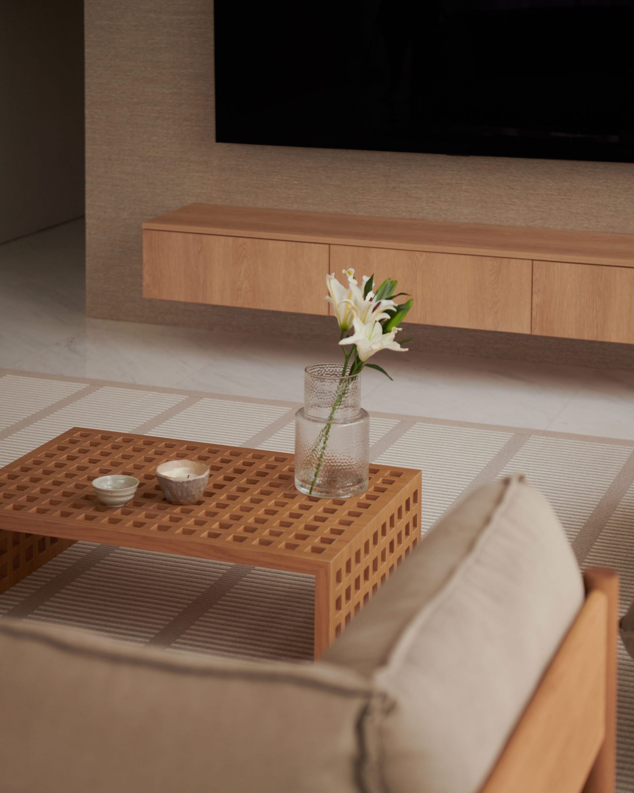 The walls were given light textures to create tactility and rattan were strategically used to create a warm and natural interior that is tailored precisely to the needs of the clients.