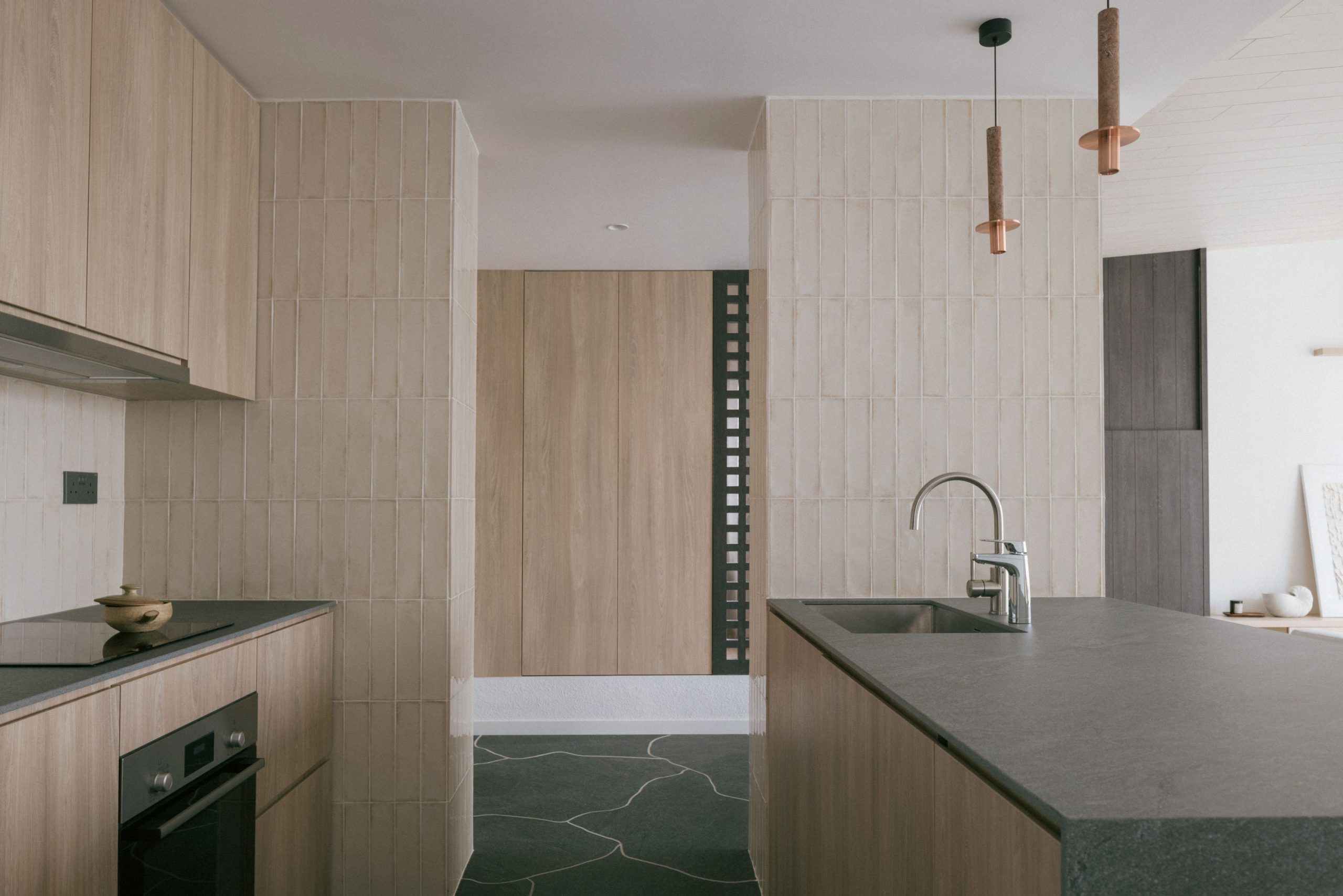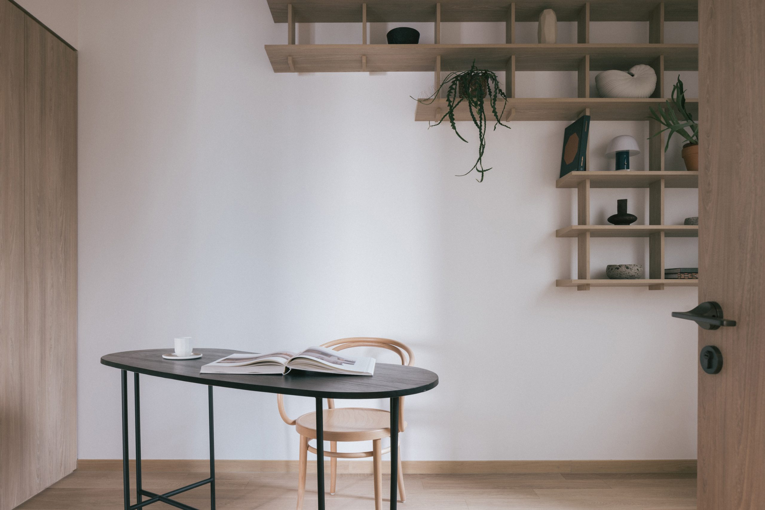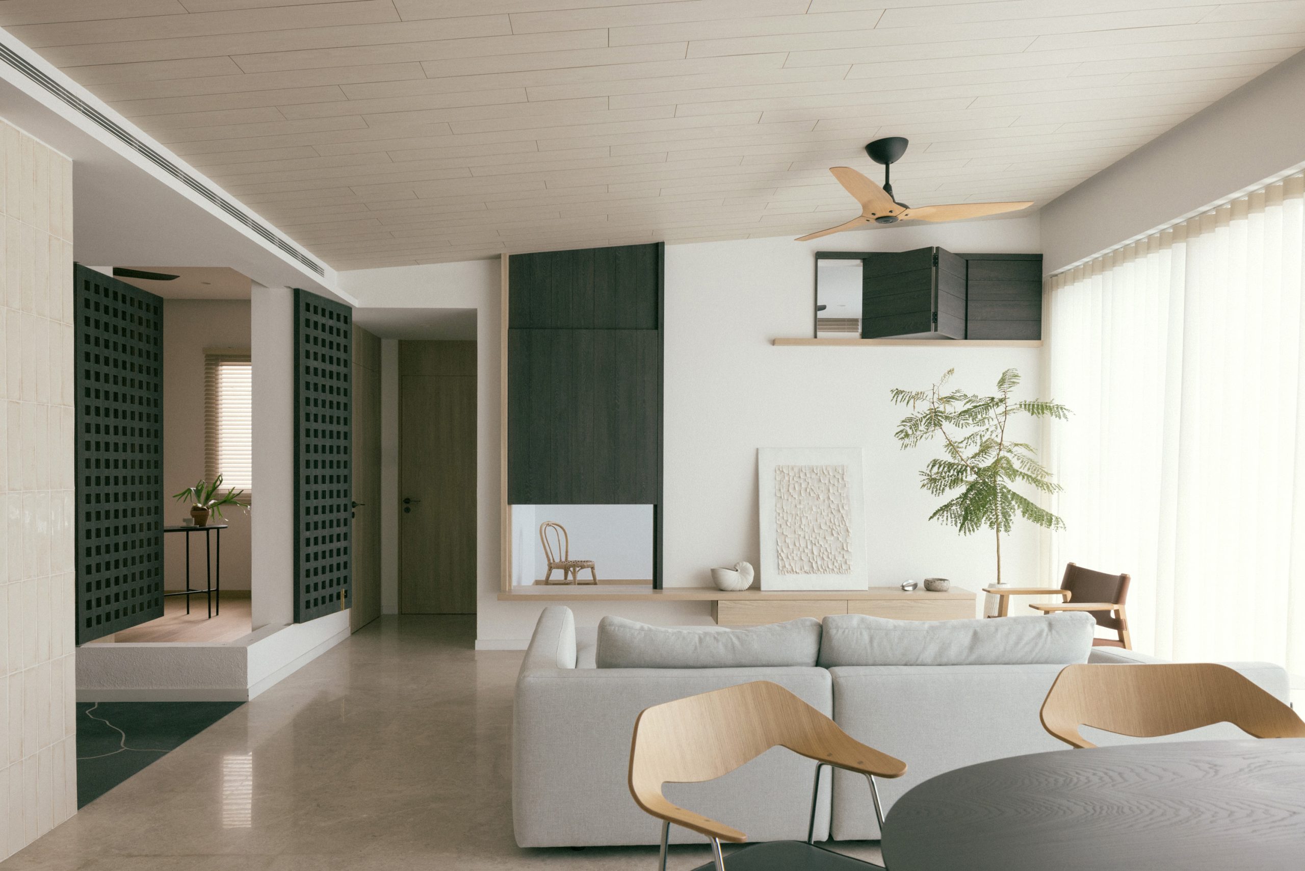 We decided to take on an experimental approach in this project by creating a series of openings in these solid walls and started putting in some whimsical interior fenestrations so that spaces flow better, creating more opportunities more meaningful interactions & inducing more cross ventilations within the unit without compromising the need for privacy. Through these whimsical windows many beautiful spatial layering could be achieved for this home interior.