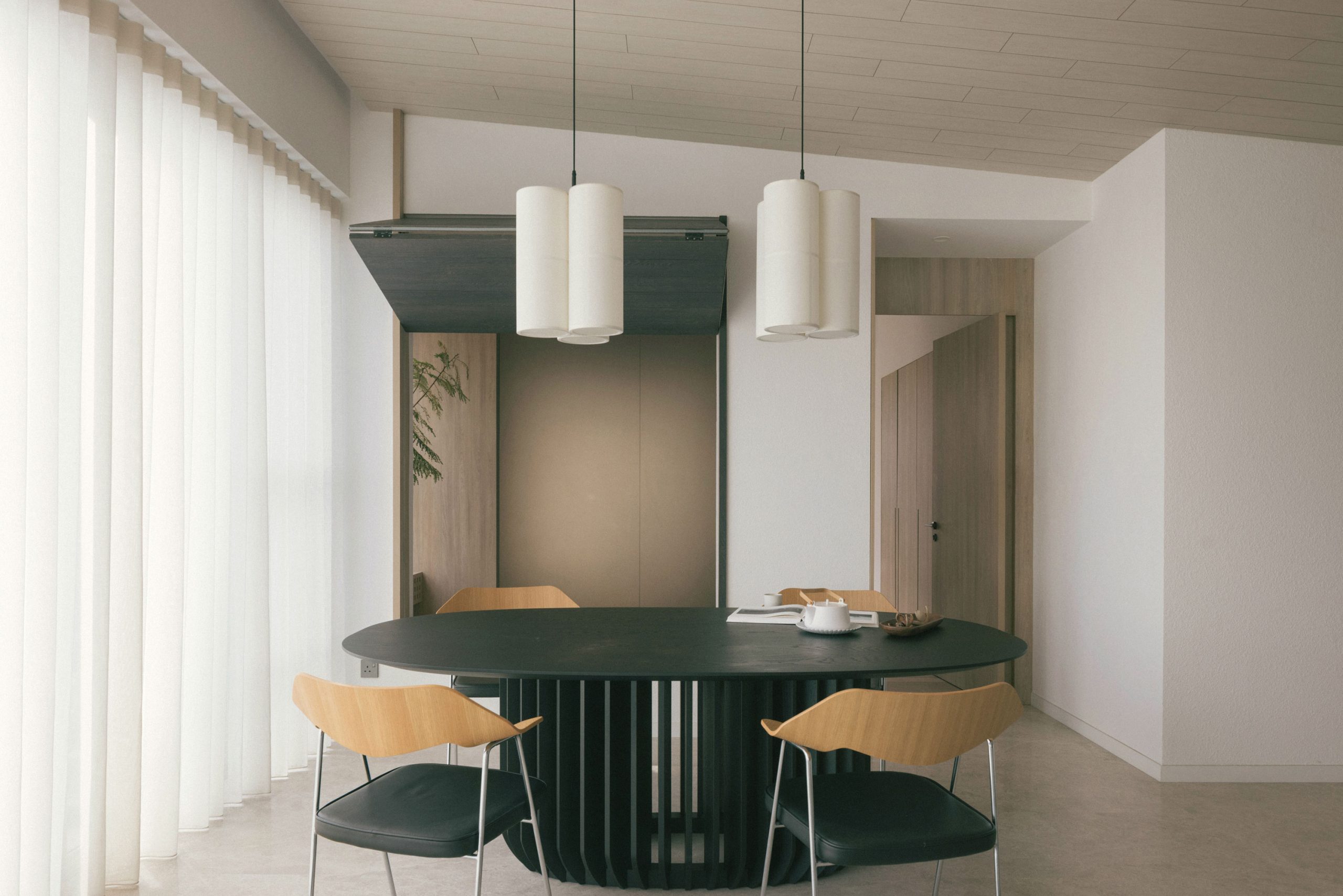 The Window Apartment is a 4-bedroom apartment unit designed for a newly married couple that is hoping to set up their young family in the near future. The living and dining spaces are located in the middle of the unit with bedrooms on both sides.